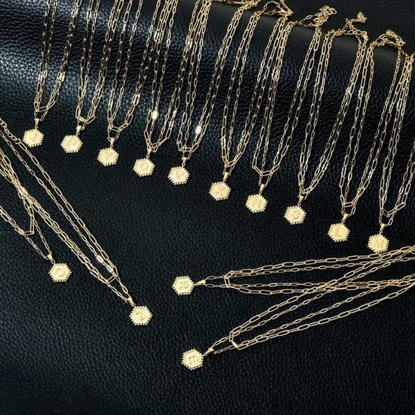 2. 18" paper clip chain with hexagon initial pendant